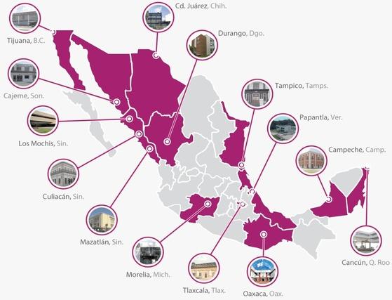 La red de Centros se encuentra distribuida en diferentes regiones a lo largo de la república mexicana, las cuales se dividen en: